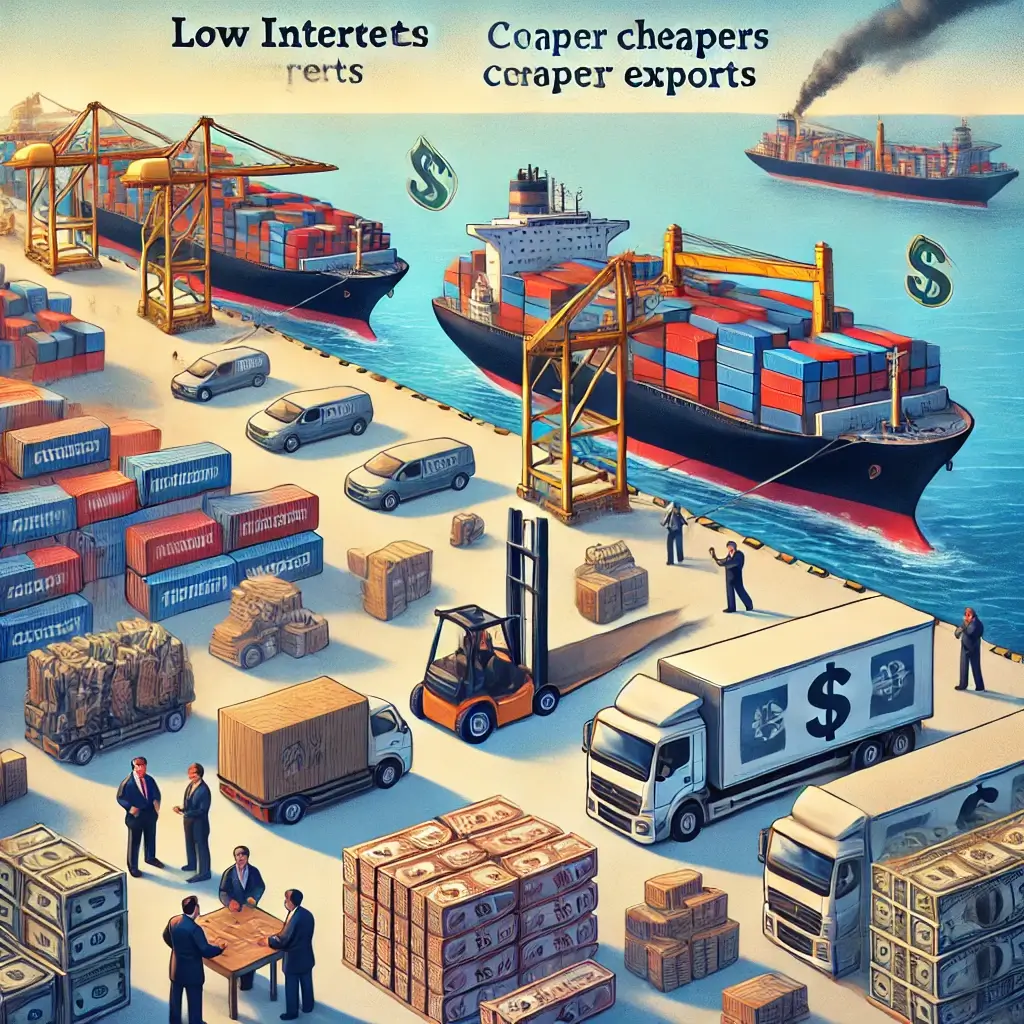 통화 정책은 환율 변동을 야기하여 국가의 무역 수지와 경제 안정성에 영향을 미칠 수 있습니다. 낮은 이자율은 종종 통화 가치 하락으로 이어지며, 이로 인해 해외 수출이 더 저렴해지고 경쟁력이 높아지지만 수입 비용이 증가하여 국내 인플레이션에 영향을 미칩니다. 높은 이자율로 인한 통화 강세는 수입품을 더 저렴하게 만들고 외국 구매자에게 상품을 더 비싸게 만들어 수출 증가를 억제할 수 있습니다.